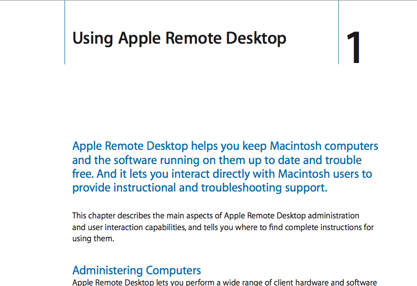 Conceived, planned, and wrote the Apple Remote Desktop Administrator Guide from scratch. The manual was downloaded by thousands of users, showed at trade shows, and won a Society for Technical Communication national award.